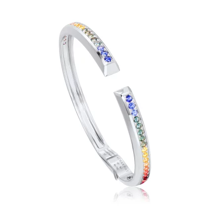BRACELET LINGOT RAINBOW GM, OR GRIS ET SAPHIRS DE COULEUR
