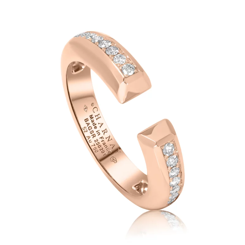 BAGUE LINGOT MM, OR ROSE ET DIAMANTS